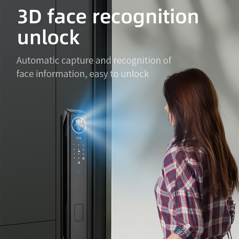 | ハイライト: | automatic fingerprint door lock with Tuya,3D face recognition smart home lock,WiFi access control door lock with video calling |