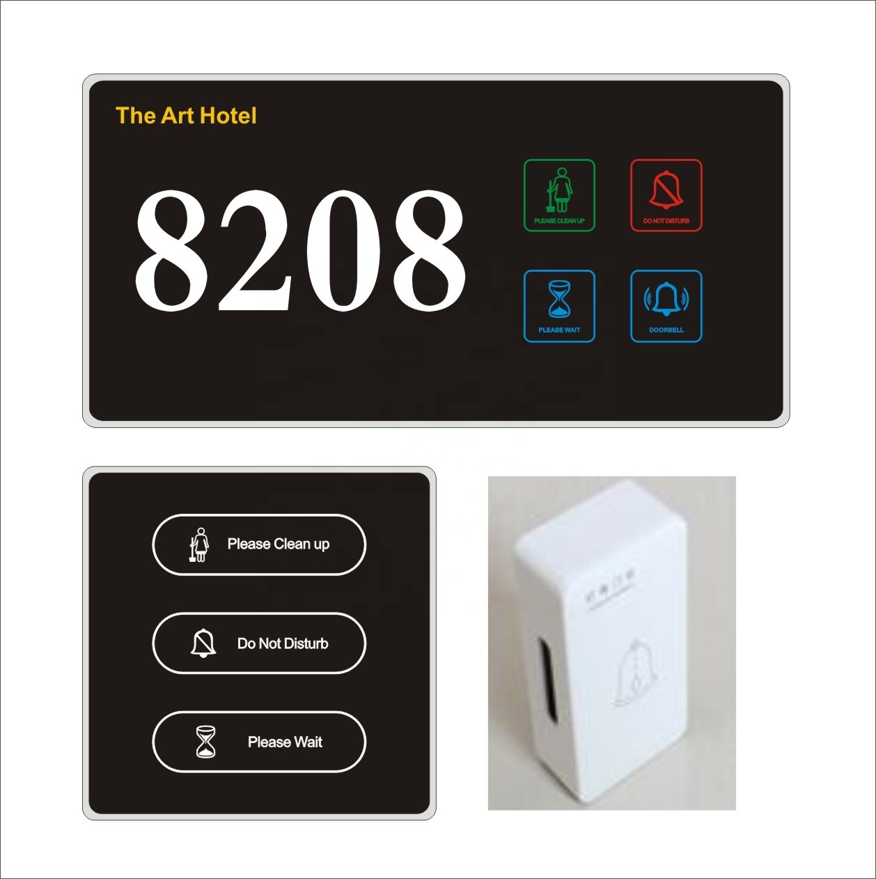 Premium touch-controlled electronic doorplate system designed for 5-star hotels, featuring DND switch and doorbell functionality.