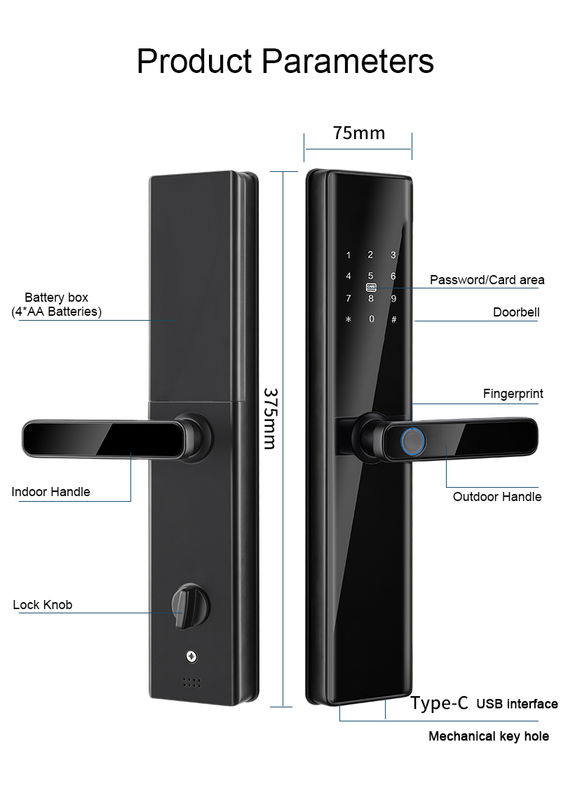 | ハイライト: | スマート ドア ロック を 開ける 6 つの 方法,8 言語 デジタル ドアロック,38-100mm ドアの厚さ バイオメトリック ドアロック |