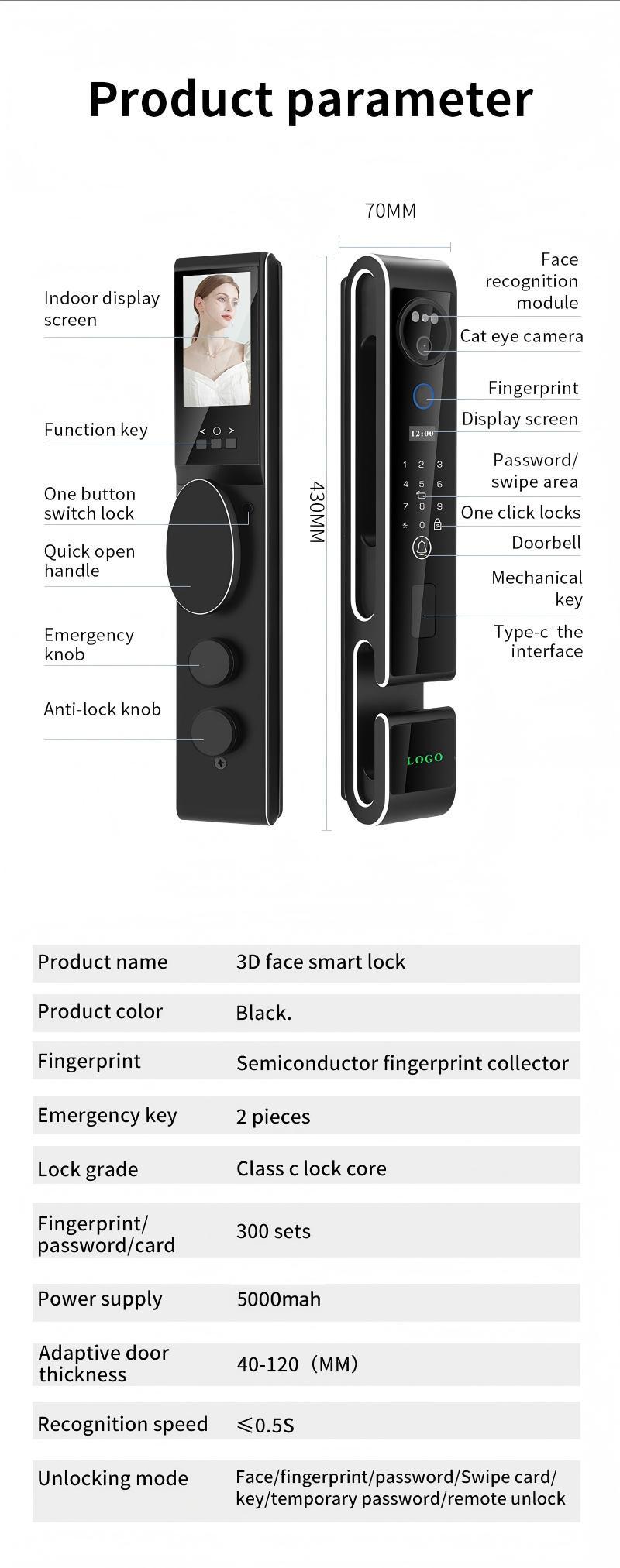 3D 完全自動 ツヤ スマート ドア ロック 多重 解錠 方法 と 言語 サポート