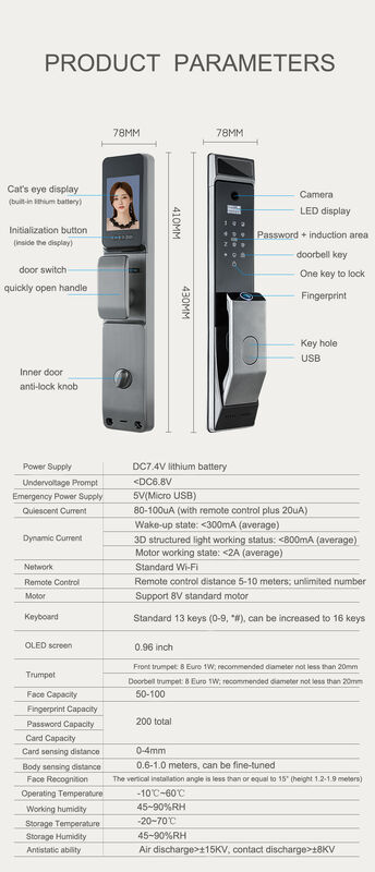 | ハイライト: | トイヤWiFi スマートドアロック,指紋コード スマートロック,覗き穴カメラ付きドアロック |