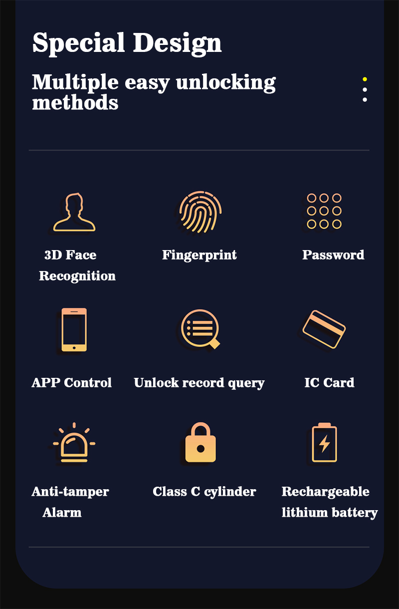 | 解錠方法 | Tuya WiFiアプリ、パスワード、指紋、カード、キー |
